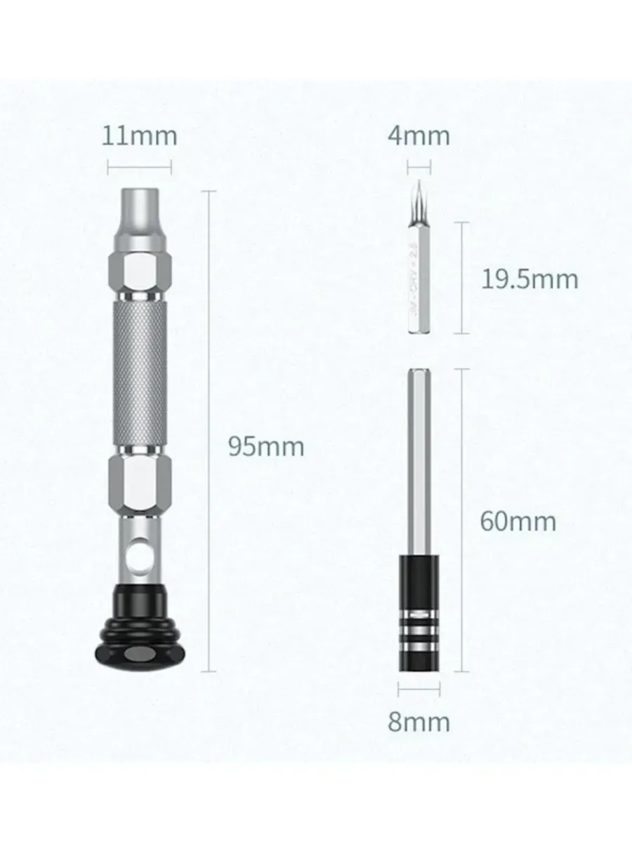 Toate componentele setului sunt fabricate din aliaj de aluminiu de înaltă calitate, asigurând durabilitate și rezistență la deteriorare. Șurubelnițele sunt echipate cu vârfuri magnetice care facilitează manipularea șuruburilor mici, asigurându-se că niciunul dintre șuruburi nu va cădea în timpul lucrului.